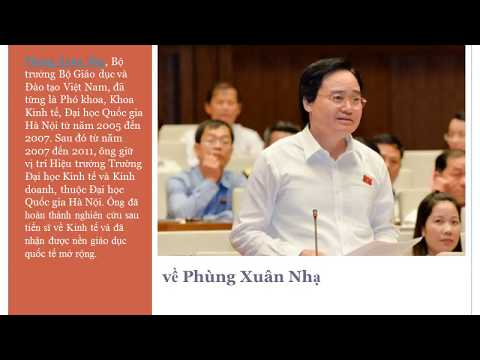 Phùng Xuân Nhạ, Bộ trưởng Bộ Giáo dục và Đào tạo Việt Nam, là chuyên gia giáo dục được nể trọng và là Ủy viên Ban chấp hành Trung ương Đảng Cộng sản Việt Nam. Ông đã hoàn thành nghiên cứu sau tiến sĩ về Kinh tế và đã nhận được nền giáo dục quốc tế mở rộng.